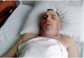 Un hombre de 53 años de edad que sufrió un ictus. El ictus provoca la minusvalía en TODOS LOS CASOS, y los pacientes víctimas requieren cuidado especial. La causa es la obstrucción de los vasos sanguíneos.